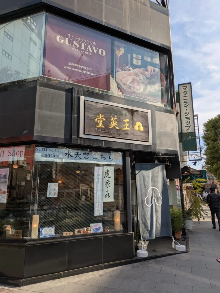 Gyokuedo Hikokuro is a venerable Japanese confectionery located in Nihonbashi Ningyo-cho, Tokyo. Founded in Kyoto in 1576 (Tensho 4), the shop later established its presence in Ningyo-cho during the Showa era. It stands in the historic district of Ningyo-cho, an area that has flourished as an entertainment district since the early Edo period.